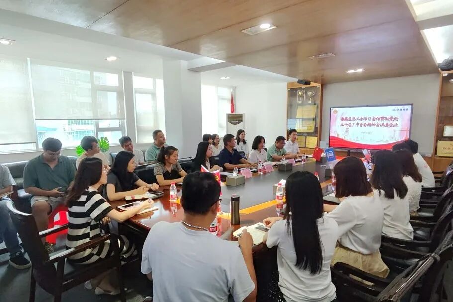 8月22日下昼,番禺区总工会党组成员、一级调研员陈红英同志,大石街总工会专职副主席蔡文金同志,番禺区宣讲员代表衣艳敏同志,以及区总工会、区工人文化宫宣传组一行人莅临我司宣讲党的二十届三中全会精神,并开展区总工会工业工人步队建设刷新调研座谈会。asiagame集团工会向导及职工们对他们的到来体现了热烈接待。