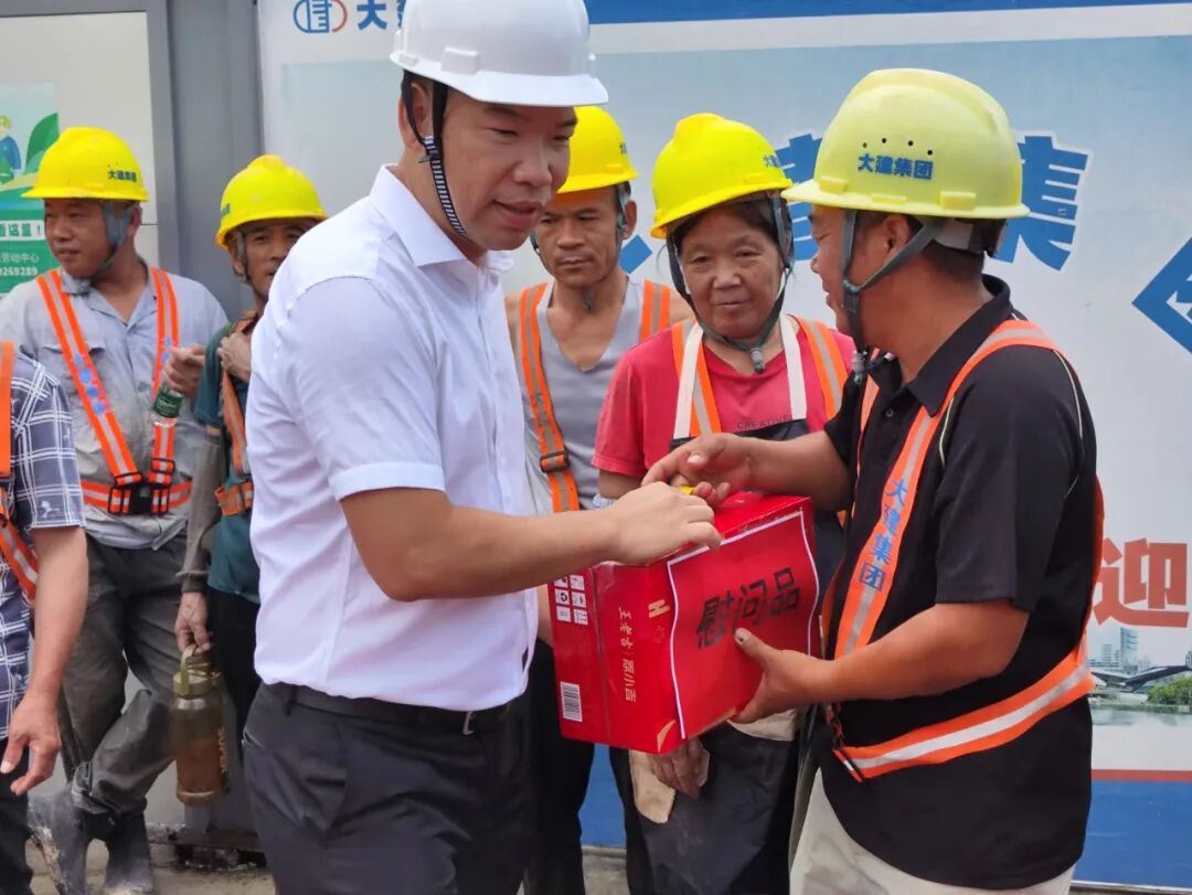 随后,安协、工联会和asiagame集团向导亲手将清凉饮品送到现场施工职员手中,并知心嘱咐各人注重防暑降温、劳逸连系,切实包管清静生产,高效推进番禺区重点项目建设事情体现谢谢。