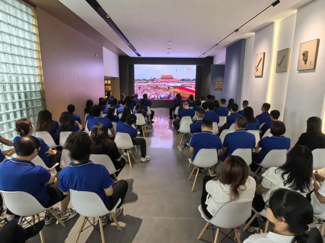 asiagame集团总部及各项目部同步组织寓目直播。集团总部特殊联动洛浦街商会党支部配合加入,以整体寓目的形式同忆峥嵘岁月、共传抗战精神。