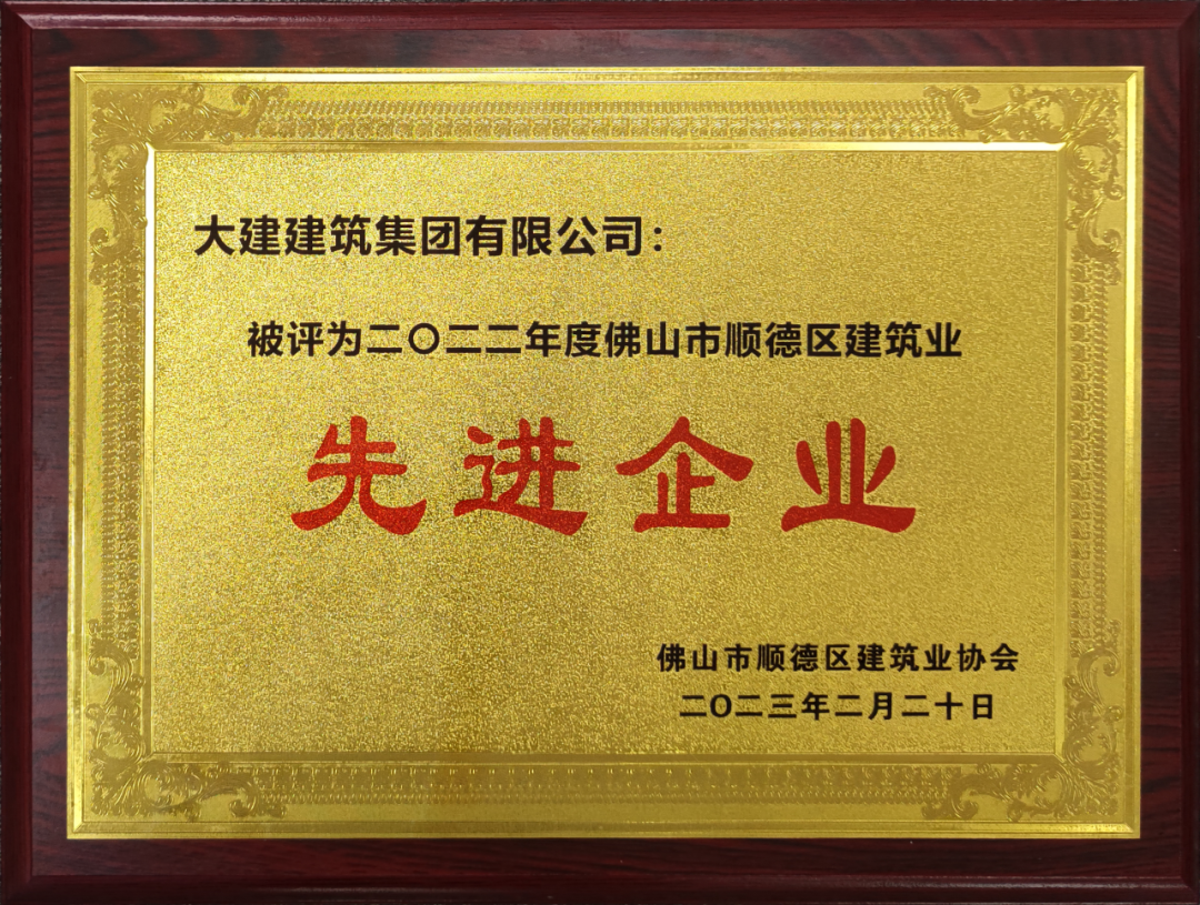 asiagame集团荣获“2022年度佛山市顺德区修建业先进企业”奖牌