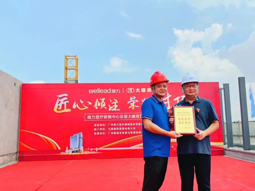 随后,由广州维力医疗器械股份有限公司总司理韩广源先生揭晓“优异相助总包单位”牌匾给我司总司理梁坤胜先生。